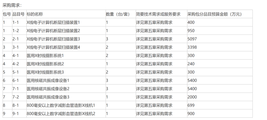 本次北京市属医院2025年医疗器械创新网集中带量采购项目放射组公开招标项目备受行业关注,预算25084万元,分9个包,用于采购CT、DR、磁共振以及DSA。