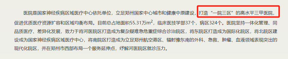 如今,医院官网也删除了“一院五区”的表述,称自己是“一院三区”。